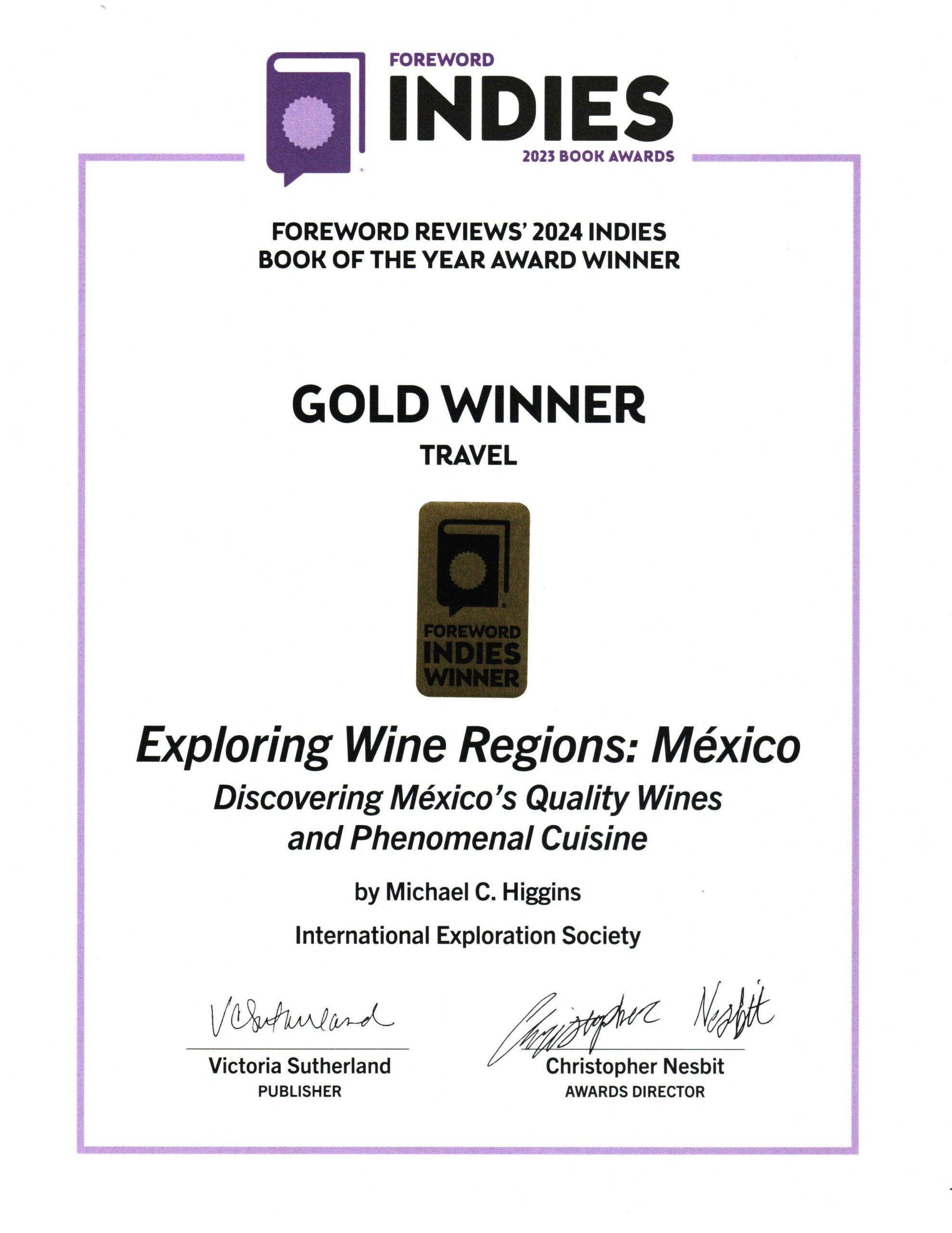 Exploring Wine Regions – México received the top Gold Medal for the Best Travel Book of The Year.