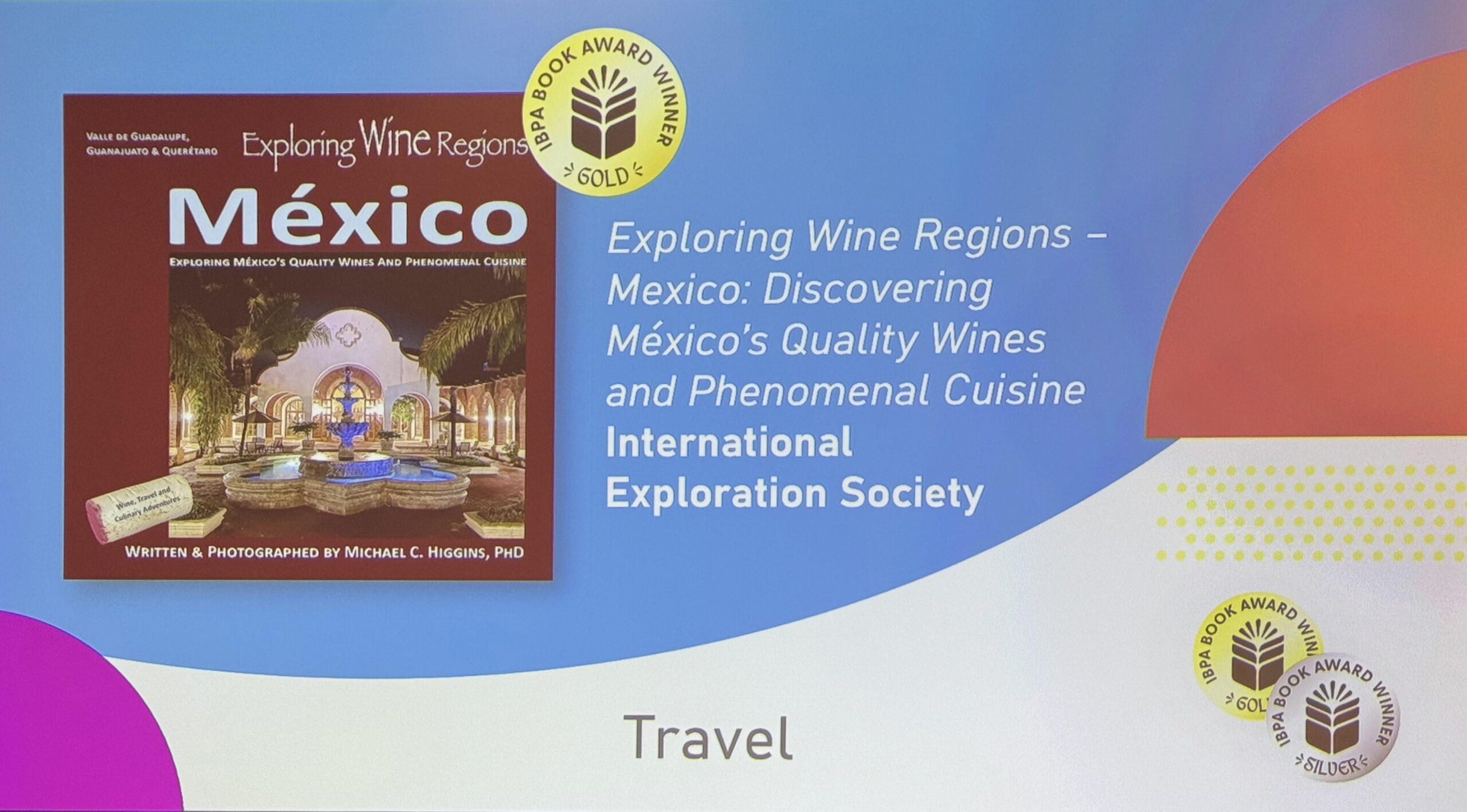 The Independent Book Publishers Association announced its gold and silver winners of its prestigious 37th Annual IBPA Book Awards representing the best independently published books of 2024. Out of more than 1,800 books reviewed, Exploring Wine Regions – México won the Gold Medal for the Best Travel Book and Silver Medal for the Best Regional Travel Book published in 2024.